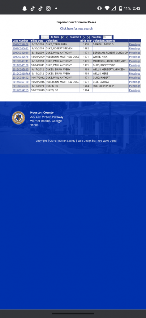 1/6/19 Update: Made appearance before Judge charged with rape, aggravated sodomy, false imprisonment & possession of a firearm by a convicted felon. Warner Robbins case. Held without bond. No further dates given. Dukes is currently in state custody & will eventually be turned over (1/9/19) to federal custody & will complete six months in federal prison, as part of his revoked supervised release. Houston County Warner Robins case on 1/1/20.