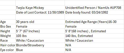 Twyla Kaye Mickey – The Charley Project
