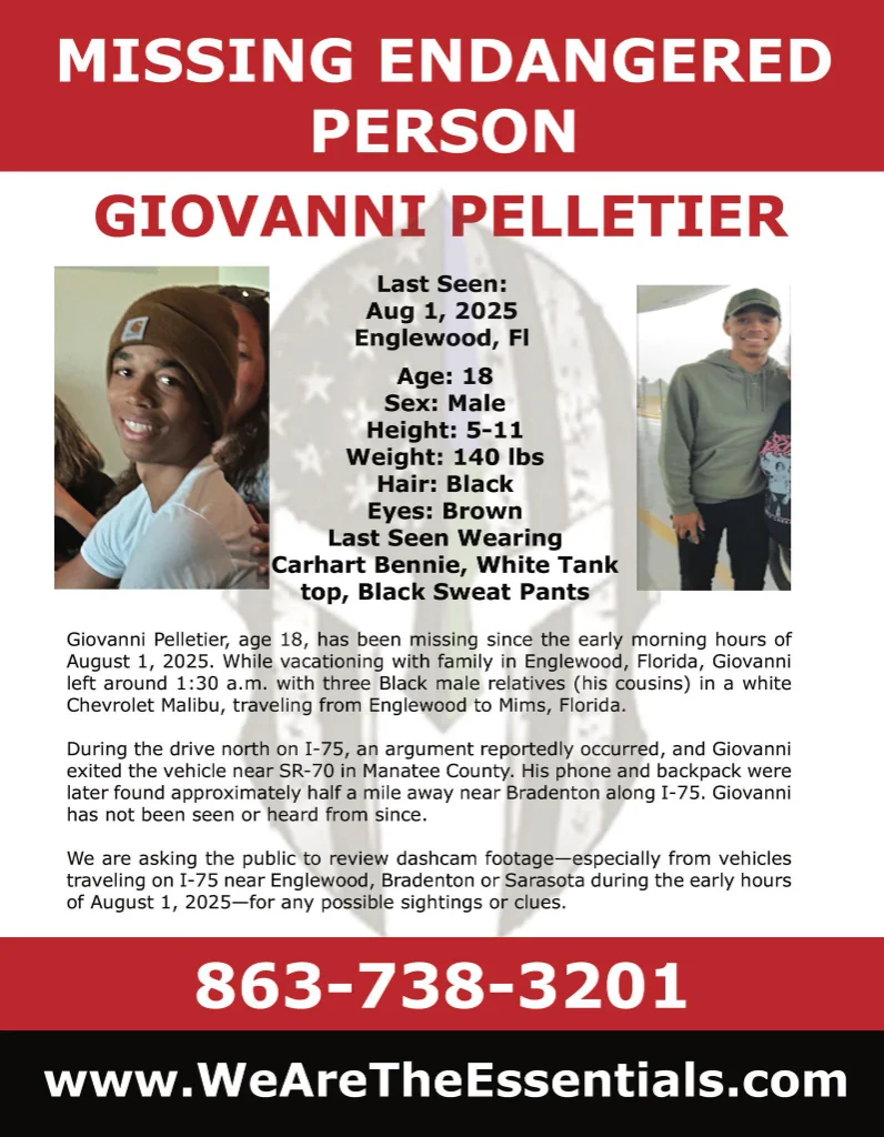 During the drive north on I-75, an argument reportedly occurred. Giovanni exited the vehicle near State Road 70 in Manatee County and has not been seen since.