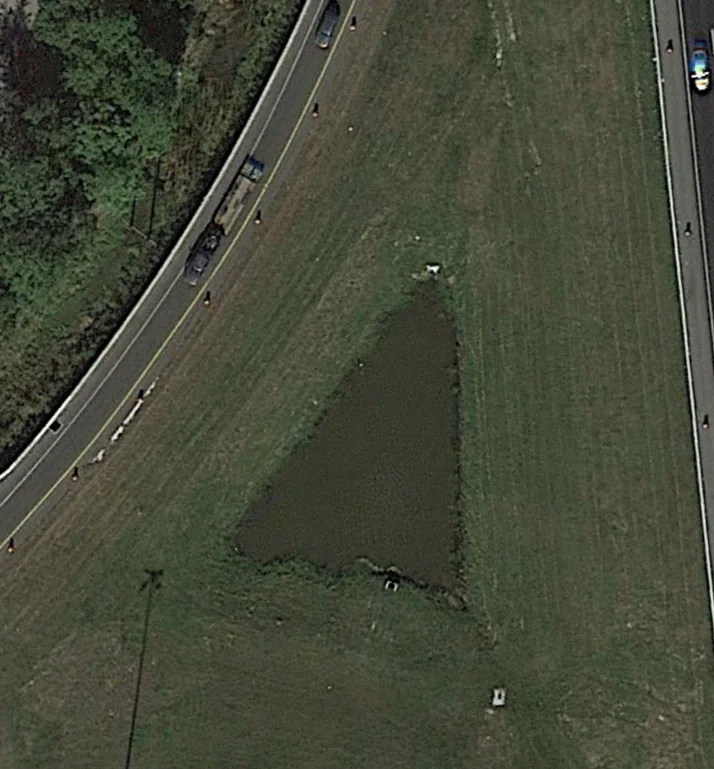 In this google earth photo from a couple years ago you can see the same pond at a much higher level. but still not at capacity.