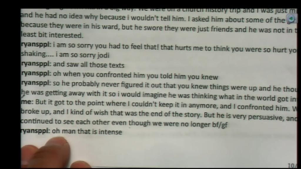 OMG what a piece of work. She was so upset she was shaking after reading Travis' texts? Im not even doubting this actually happened, shaking in jealously, but WTF how much more WOE is me can she be to her new guy? Its so obvious. Gross. She has a "please protect me, I'll wear my hair in braids like a little girl" mode. Can't believe the new guy didn't end chat permanently following this conversation.