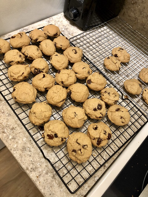 The food bank gave me boxes of raisins. I converted this cookie recipe to gluten free, egg free, dairy free and reduced the brown sugar by 1/4 cup. I added a about 2 teaspoons of cinnamon. I emptied the last of the cinnamon from my container but it looked like about 2 teaspoons.