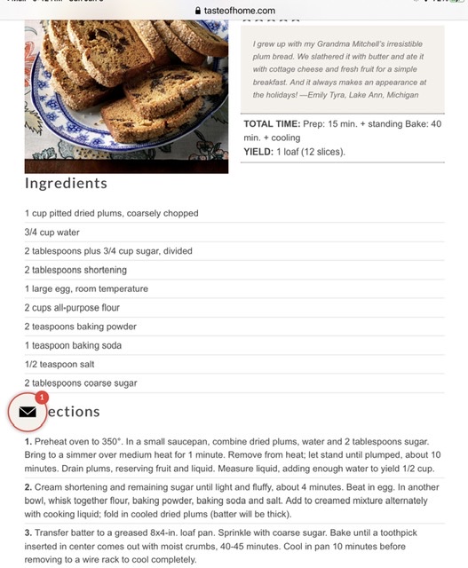 I’ve been trying to figure out what to do with the dried plums. So, I’m about to start this Sugar Plum Bread! I will convert it to gluten free and egg free. It is already dairy free because it uses shortening. I plan to add maybe nutmeg and cinnamon to spice it up a bit. I don’t have chunky sugar crystals but I don't think it will matter. We don’t like super sweet bread anyway. Stay tuned!