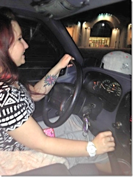 The photo Steve took of Heather learning to drive his car.