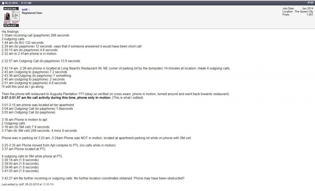 Here's a screenshot of a post where we know that per (someone's?) testimony, her phone turned around at Seaside Grove Apartments and headed back to LB's.