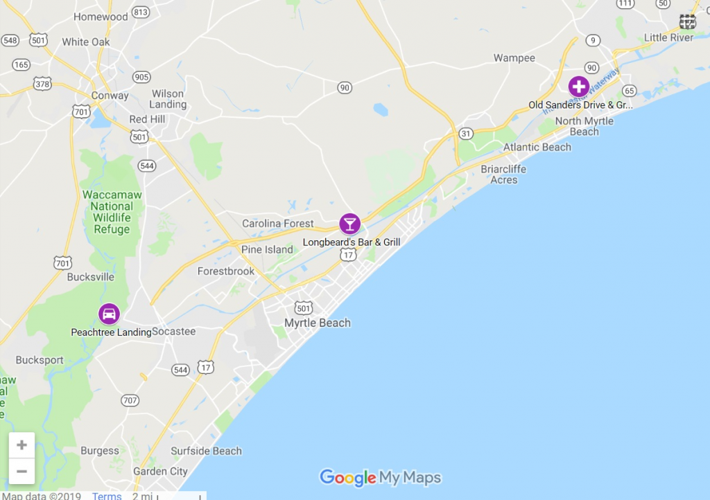 The background of the map below shows all the cell tower locations for the Myrtle Beach area. (See link below it).
