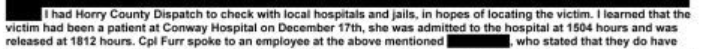 Also does anyone recall if the information on the police report was correct where it stated she had been in the hospital on December 17th?