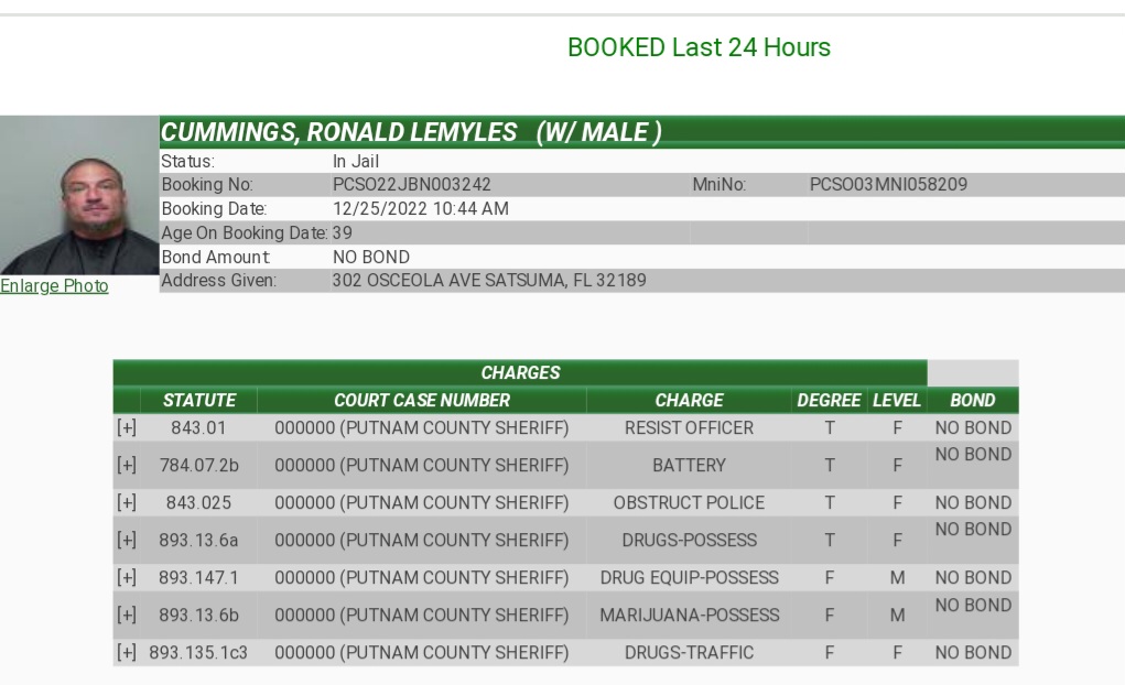 Here is the link to the updated article on Ronald Cummings arrest charges and him trying to steal LE gun.News4Jax has updated the article, can't get the link to post. The article states RC tried to grab a cop's gun while being arrested! His bond is only $185,000, SMH.
