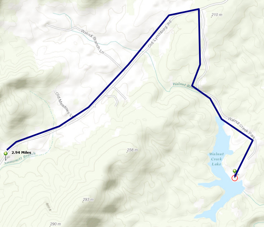 Here's a map showing the approx. driving distance between Ammonett Branch Creek and the command center.