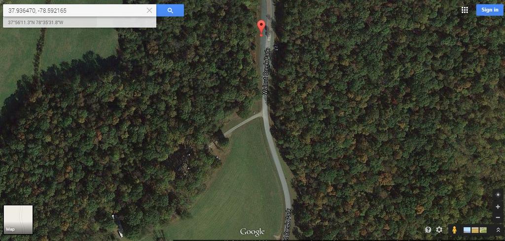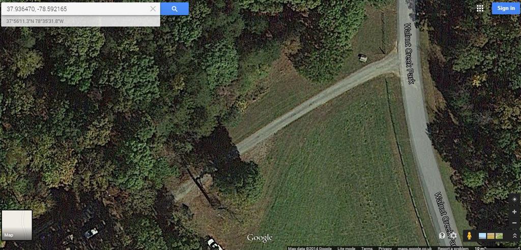 Below is a farm with an entrance off the Walnut Creek Park road. That property belongs to the County Finance Dept. There is a dry creek behind the building.