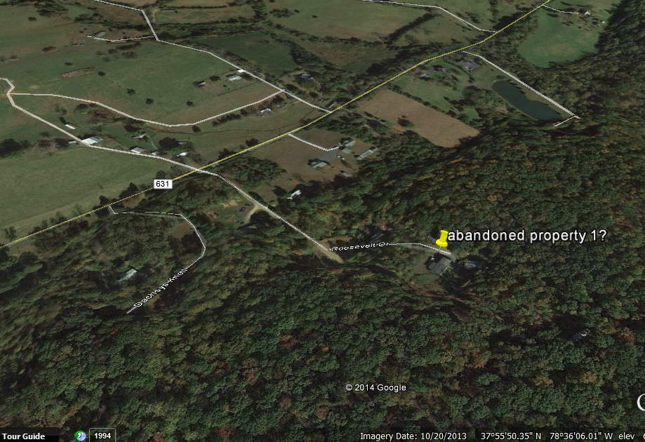 Looking at the Albemarle County property maps in that website, the property that extends back from the corner of Plank Road and Old Lynchburg Road is 3470 Old Lynchburg Road. It appears to be owned by a bank? If you put 3470 Old Lynchburg Road into Google maps, you see a streetview of an abandoned house.