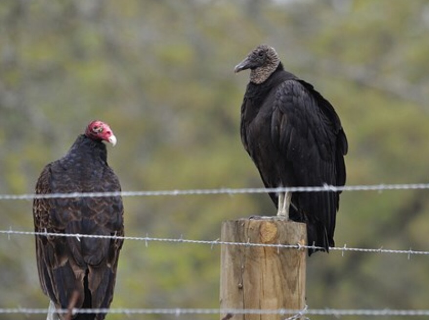 FWIW, Mr. Pugh stated he saw " black vultures" specifically and went on to explain their habits. He's an outdoorsman so knows the difference between black vultures and turkey vultures. They are distinctly different. For example, black vultures have a shorter wingspan and weigh less than turkey vultures. Black vultures do not have a keen sense of smell, so they use their keen eyesight and tend to follow the turkey vultures to a food source. The black vultures tend to intimidate the turkey vultures which causes them to leave the source and the black vultures take over. Black vultures savagely attack the remains and stomp fiercely while devouring quickly. They are quite familial and actually take turns at the source. Also, their flight pattern is much different than turkey vultures.