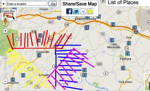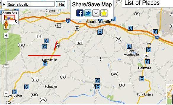 Here is a screen shot of all the cell towers....from Charlottesville to 30 miles south at Lovingston along Rte 29 corridore.