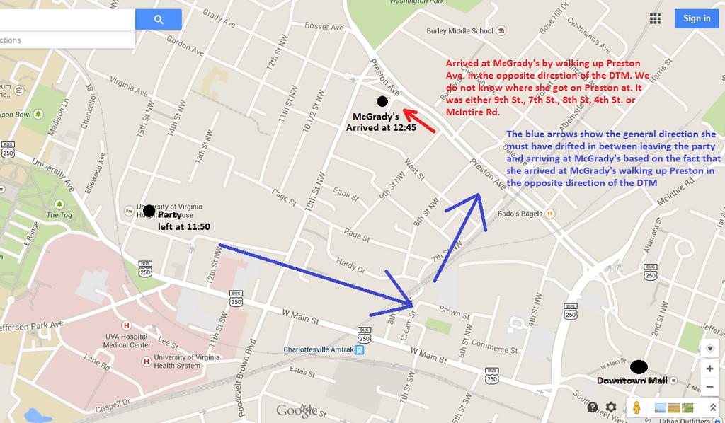 Graham went missing after walking from 14th Street Northwest to Preston Avenue and then onto the Downtown Mall. She last was seen on mall surveillance video at about 1:08 a.m. Sept. 13, and her last communication came in a text message sent from her phone just before 1:30 a.m., when the phone died.