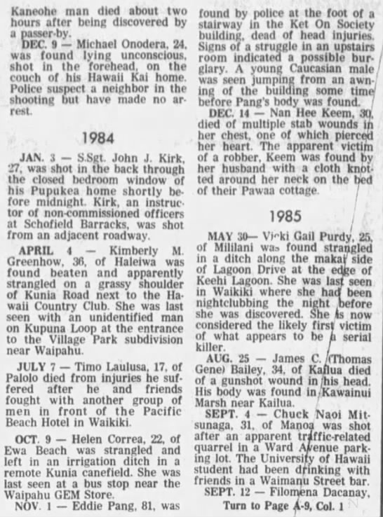 HONOLULU (KHON2) - Thirty-four years ago, Helen Correa was found dead in a sugar cane field in Kunia.