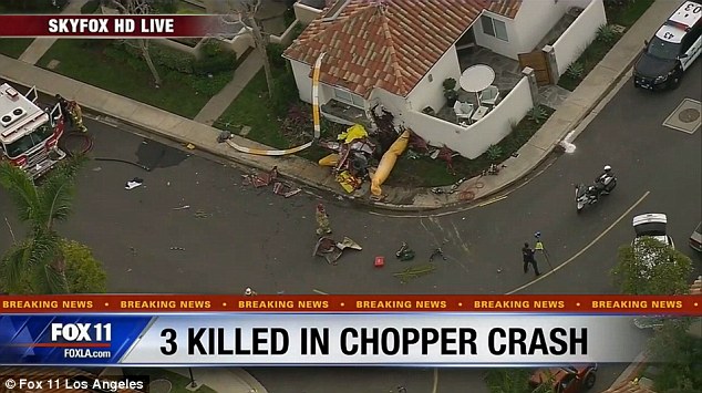 The Robinson R44 aircraft crashed about a block from the Newport Beach Tuesday afternoon around 1.45pm.