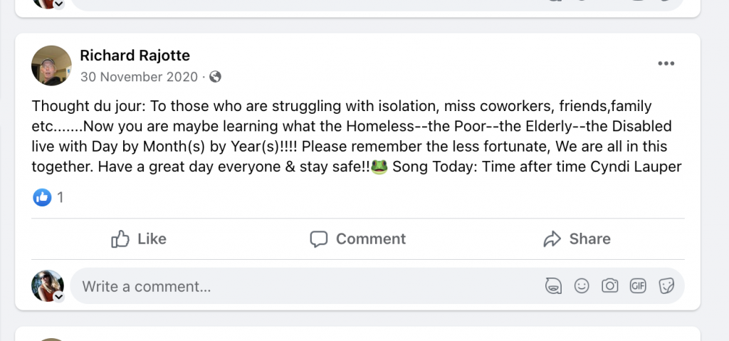 I have just been through his FB page. He had a gap between 2012 - 2020. He posts about homelessness. He thanks people for birthday messages on the 3rd of August and in the article said he was a Leo. And there is a reference to living in Calgary East Village.
