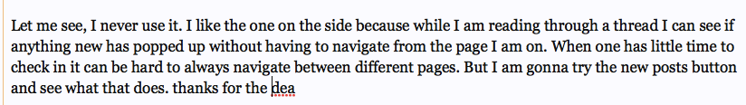 I'm not sure if this might be covered elsewhere. My Updates section (Box?) went away on the right hand side of my screen. This is on a desktop running Firefox, under Windows 7. The 'Section' listed the most recent updates to any/all forum postings. The 3 columns (from a poor memory) were, 'Updates', 'Recent Threads', and 'Recent Thread Updates.' Something like that. Did something get updated? Or perhaps this is a random issue? Any thoughts, or similar experiences?