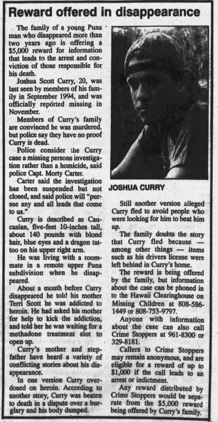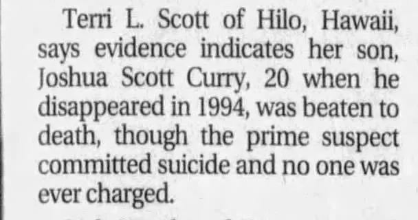 In the 2004 article Joshua's mother says the prime suspect committed suicide. Joshua's roommate committed suicide shortly after Joshua's disappearance. I'm wondering if the roommate is the prime suspect.