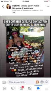 A Facebook group called “MISSING- Melissa Estoy- Case Discussion & Awareness” frequently posts updates on the case. One poster in the group said to have seen Melissa at Waianae McDonald’s, we’re she was believed to have worked at in the past. In the post, the poster alleged that her brother saw Melissa walk in the fast food joint. He talked to her and tried and get her to come home, but she ran off.