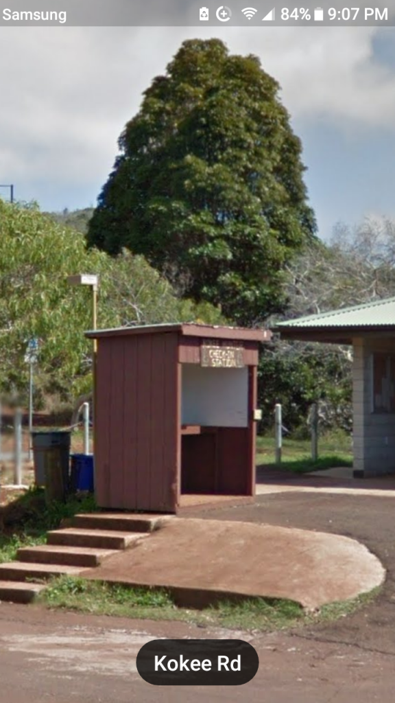 There are no fruit stands in the area as was suggested by a sleuther. There are plum trees, but they are not in season. Guavas are in season, but they are at a lower elevation than Kokee State Park.