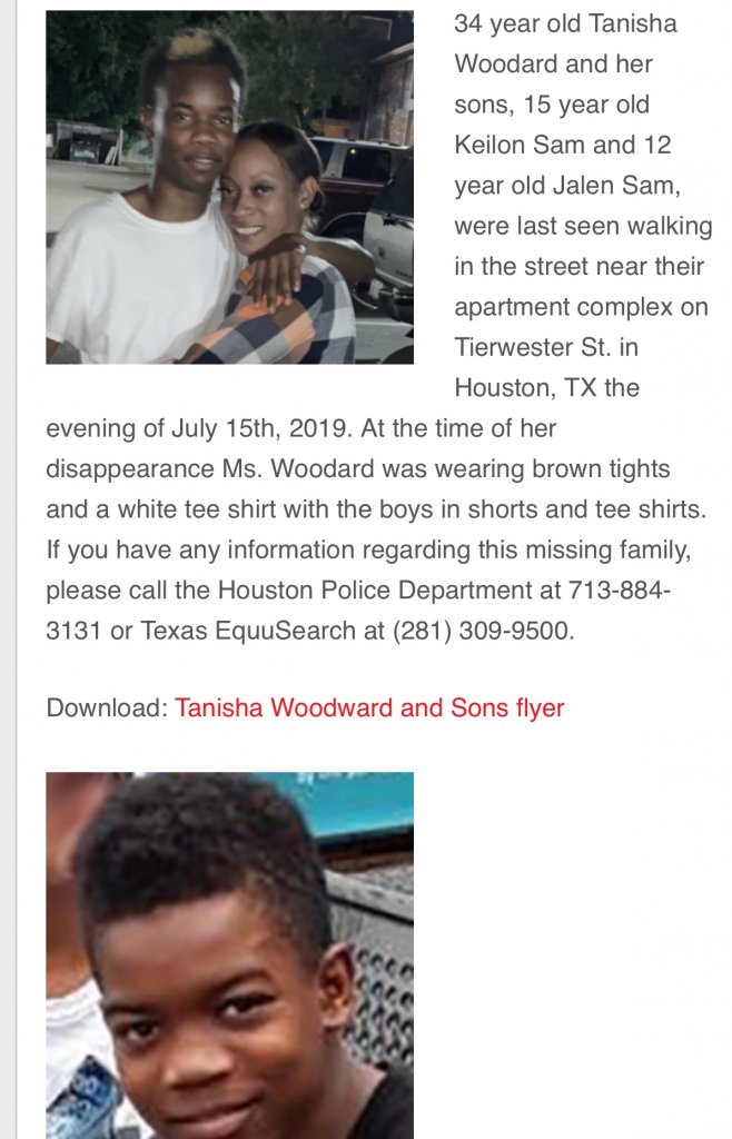 MISSING FAMILY: Tanisha Woodward & Sons – Houston, TX (7/15/19)