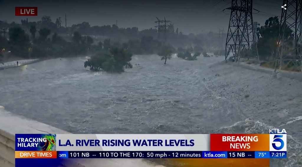 Isn't that where they raced the cars in Grease?LA River, which is normally a tiny stream, or no water at all.