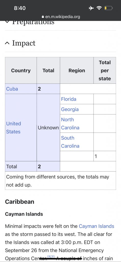 I just read this about the HI death toll in the United States (Florida, Georgia, SC & NC).