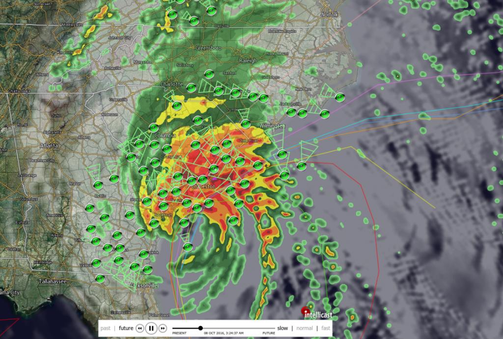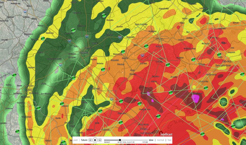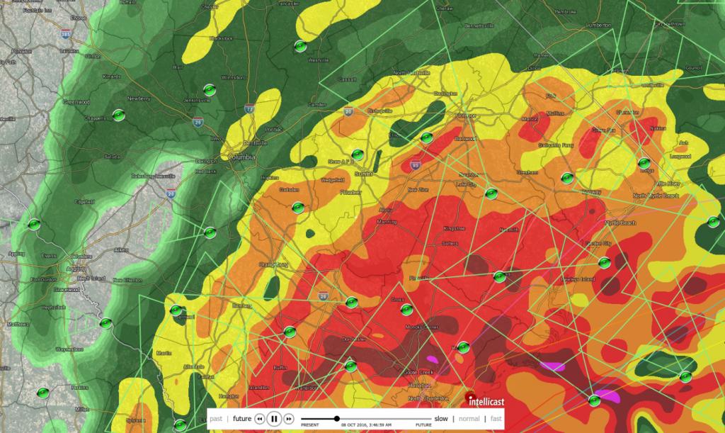 Savannah live news and weather http://wsav.com/live-stream/ just showed View attachment 102612 downed tree downtown and people boarding a bus for the Civic Center earlier Screenshot 2016-10-07 at 11.42.24 PM.jpg. Worse coming in the next couple of hours ~1 am. Watching rivers. 11 inches of rain confirmed at worst, in Bluffton, more expected. About 4 thousand people hopefully hunkering down safely for now in this area. Wilmington pretty flooded roads due to rain, not yet surge or high tide... right now wind not too bad.Screenshot 2016-10-08 at 12.17.02 AM.jpg downtown Savannah 12:17 am