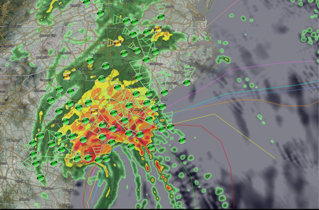 I'm in upstate SC, near Charlotte, and so far we've just had relentless rain since yesterday. But my power has flickered a couple times this morning and I just got an automated call from the power company that due to extensive outages in the area, the number to report an outage may be unavailable if I try to call.