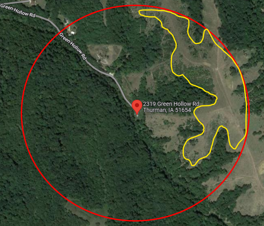 I read somewhere that the well is actually behind the house on a Neighbor’s property or on the edge of the former Studey property. I pulled up the county property line map and also looked at google maps to try and estimate it’s location. It could also be an old livestock well or an even older well given the history of that area. I live in this area and it is heavily wooded and it also consist of Bluffs and flat pasture areas. If this story is true there is difficult terrain to search in addition to the well. I would assume that the well is on the higher ground behind the property which looks more like a pasture area. Hoping someone can look at these images and estimate where a well might be located.