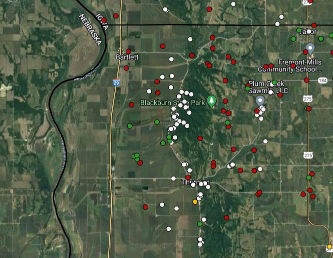 To the east and bordering the Missouri River you'll find really flat farm land that mostly looks as you would imagine Iowa except they've had some horrible flooding. Interstate 29 runs North/South through that flat land towards Council Bluffs / Omaha, and from the interstate this appears to be a clearly defined line of hills. Maybe more than hills but less than mountains. It's beautiful really, especially at this time of year.