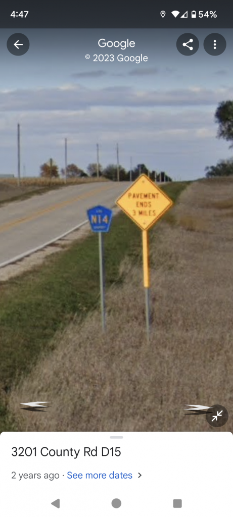 North of D15 is only paved for 3 miles and then is gravel. Having grown up in rural Iowa on gravel roads, they're usually not used as through-roads. If you live on gravel, you take the shortest route to a paved road and then continue - you have to (or should) drive much slower on gravel and it's dusty. I lost control on gravel when I was a dumb high schooler driving too fast and wrecked my dad's car.