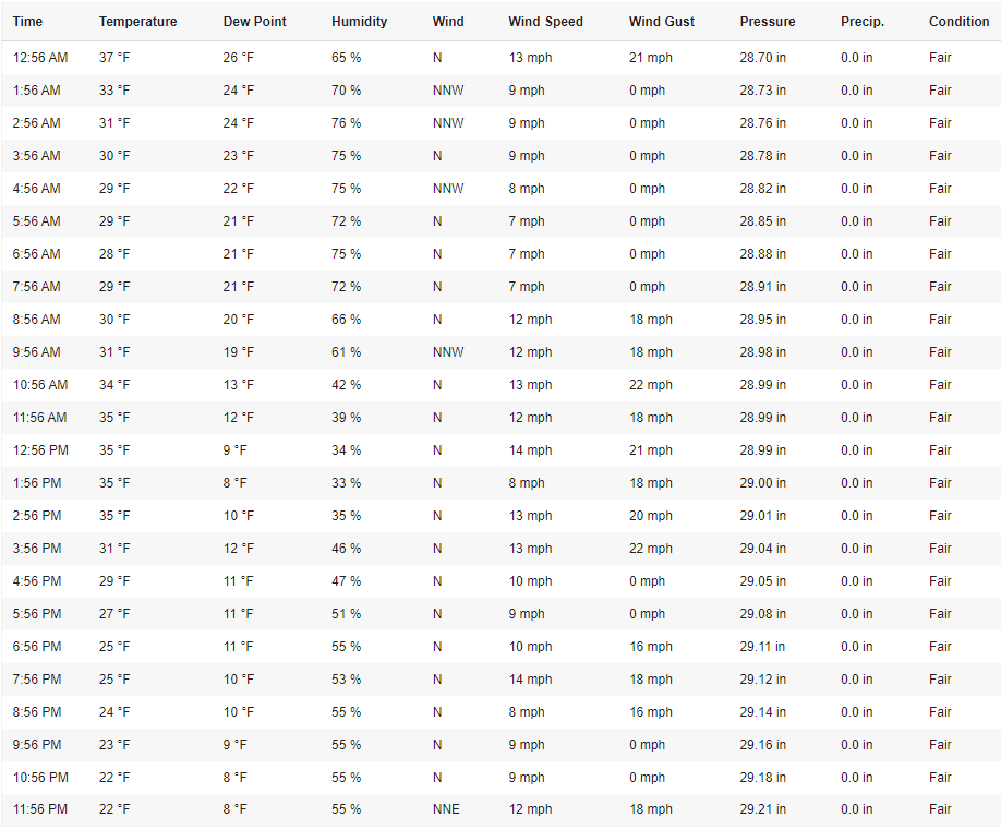 I'm not sure where your weather data is from, but the closest weather station I could find is at Storm Lake Airport, approximately 20 miles from where Dave's truck was found.