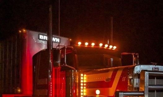 One might be able to make out the lit up "porch sign" on the top/front of his livestock trailer...