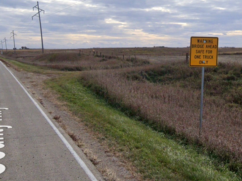 I don't know exactly where on N14/Union Avenue the truck was found, but between 200th and D15/190th there's a bridge over a drainage ditch. Road signs on the approach to the bridge indicate only one vehicle should drive over the bridge at a time. That could be a logical reason for stopping the truck, but still wouldn't explain what happened to David.
