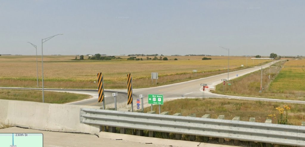 There are lights down at the intersection, but no lights on the exit ramp between where you exit Hwy 20 and turn left to go to Sac City or right to go north to where the truck was found.