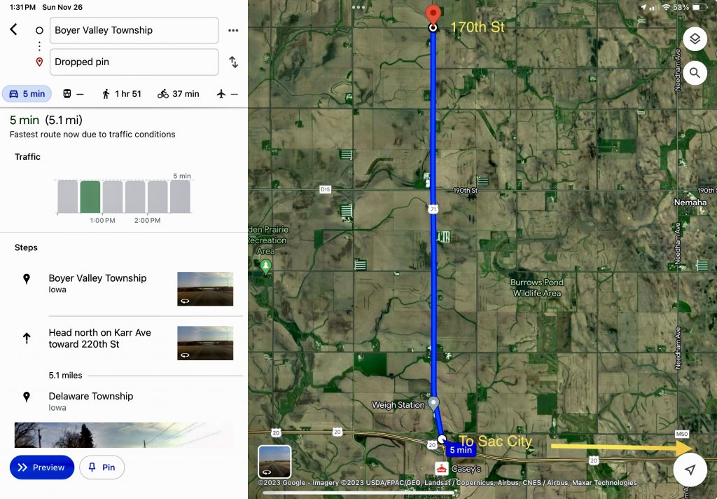 I agree with your assessment, @Snoopster. They said it was “on 71, north of Old 20”. Five miles north of 20 on 71 would put the truck near the intersection of 170th st and 71. I don’t know if “old” 20 is a different road. Locals would know.