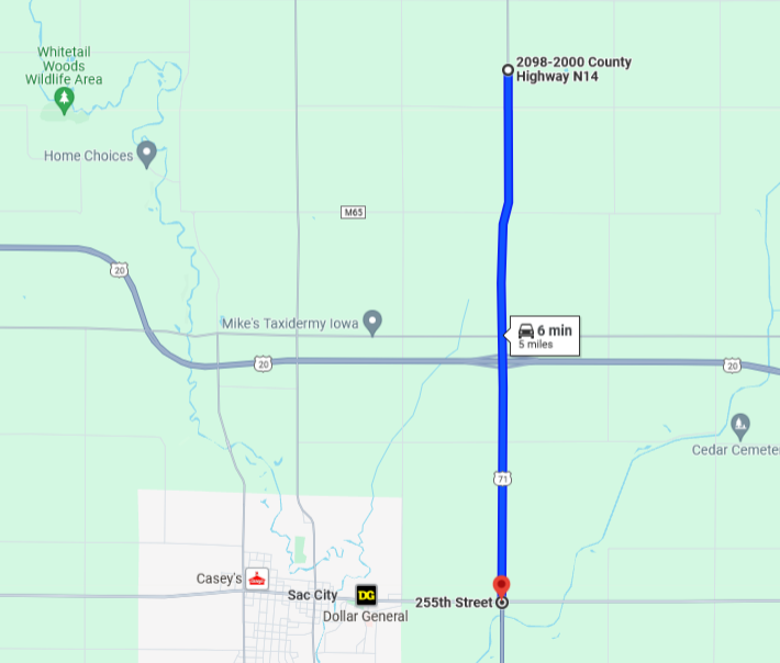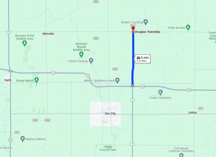 These maps show northeast of Sac City, one shows 5 miles north of old hwy 20 and one shows 5 miles north of new hwy 20.