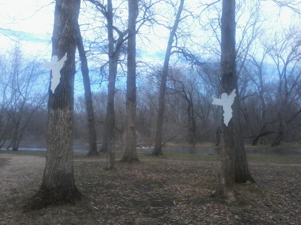 securedownload.jpg The white painted wooden angels someone put high in the trees at seven bridges.