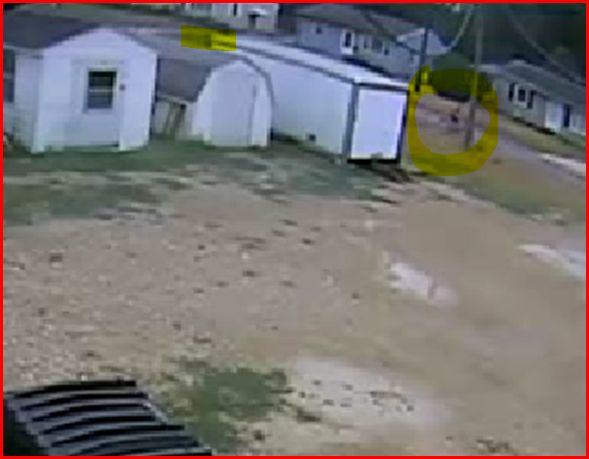 Ok, what I saw was a person. Moving from left to right behind the little barn shaped shed and the white trailer. It is almost impossible for me to screen print. I might have some video software I can put it through. Here is my screen shot.