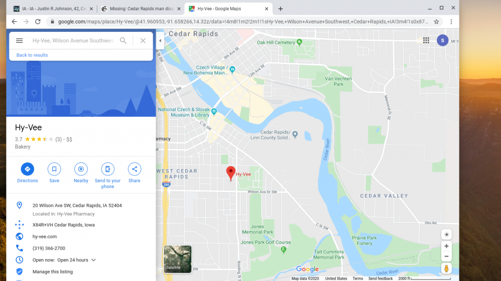 Justin Robert Johnson, 42, of Cedar Rapids, was last seen just after midnight Nov. 4 at the Hy-Vee on Wilson Avenue SW in Cedar Rapids.