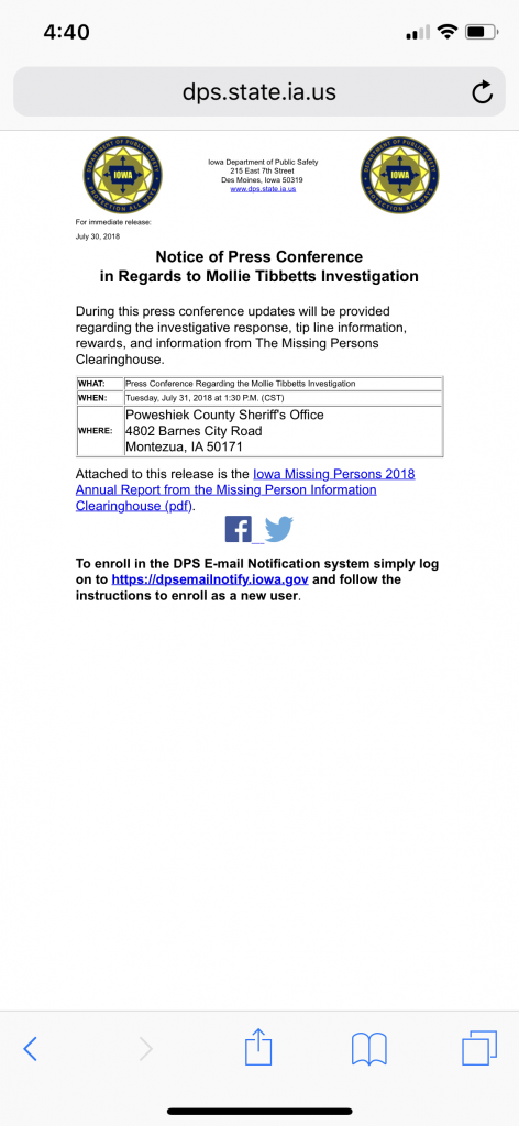 Disappearance of University of Iowa student Mollie Tibbetts remains a mystery