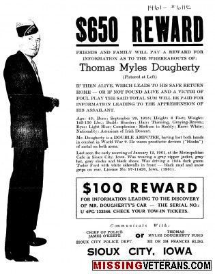 Dougherty, 45, was last seen on Lower Fourth Street in Sioux City during the early morning hours of Jan. 12, 1961. No trace of him, or his specially outfitted Ford Tudor, has ever been found.