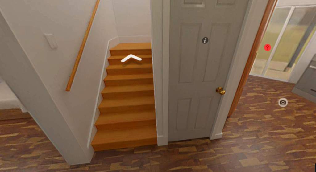 This is a SS from the virtual tour of the house. D's bedroom on the far left, in the middle are the steps leading up to the 3rd floor and on the far right we have the sliding door exit. Where was D standing when he walks toward her and out the sliding door?