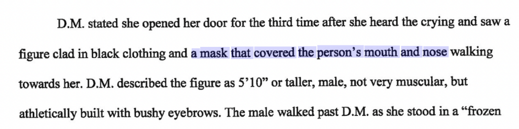 Now that the Affidavit contents have been disclosed, along with a few other heretofore nondisclosed pieces of info, I'll assume everyone is well versed on what is being released to the public to date. I'm a bit troubled by the absence of detail one would expect to find, however, that doesn't mean there isn't detail, it simply means if there is detail, it has yet to be disclosed. Question: is anyone similarly troubled by the timeline of the suspect's vehicle entry into the King Road neighborhood and the exit of the suspect's vehicle out of the neighborhood? According to the affidavit, suspect vehicle was observed moving into the King Road neighborhood at 4:04 AM. No detail as to how close to the house, no definition of King Road neighborhood. Next, is the statement that suspect vehicle is observed leaving the King Road neighborhood at 4:20 AM at a high rate of speed. Again, no detail. The observations were captured from security video and both captures were of the suspect vehicle moving. Troubling is that the suspect would need to park, get out, enter house, kill 4 peeople, get out of the house, get back to car and get inside it, and leave. The surviving roommate describes an athletic build of a man walking. Not running or moving fast. Most of the news reports describe BK as skinny, not athletic. But - individual observations are very subjective. The surviving roommate might consider athletic what others consider skinny. Unimportant. What troubles me is the timeframe - especially in light of additional information revealing that one roommate was downstairs in the kitchen leaving a DoorDash bag on the counter, perhaps taking contents back up to her room to eat and play on her phone between 4:00 AM and 4:12AM. There are other tidbits of info that suggest activity other than sleeping of at least 2 of the victims. It appears there would be a bit of struggle between the suspect and 2 of the victims which would eat up a few minutes. Considering the minutes available to the suspect in order to accomplish the slaughter of the 4 victims, any thoughts?