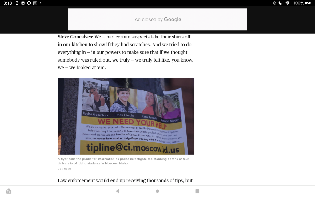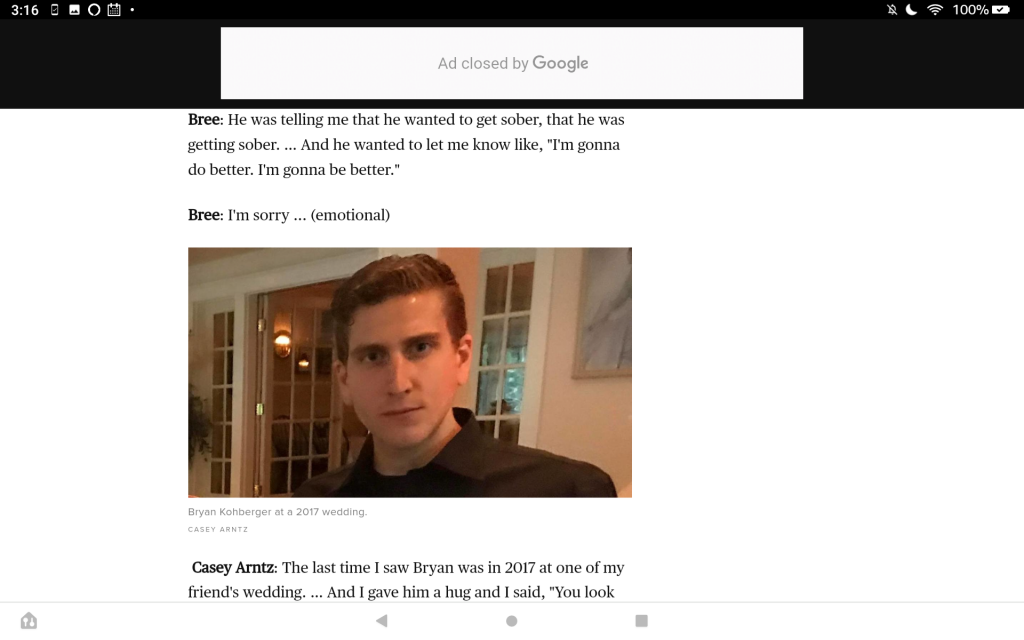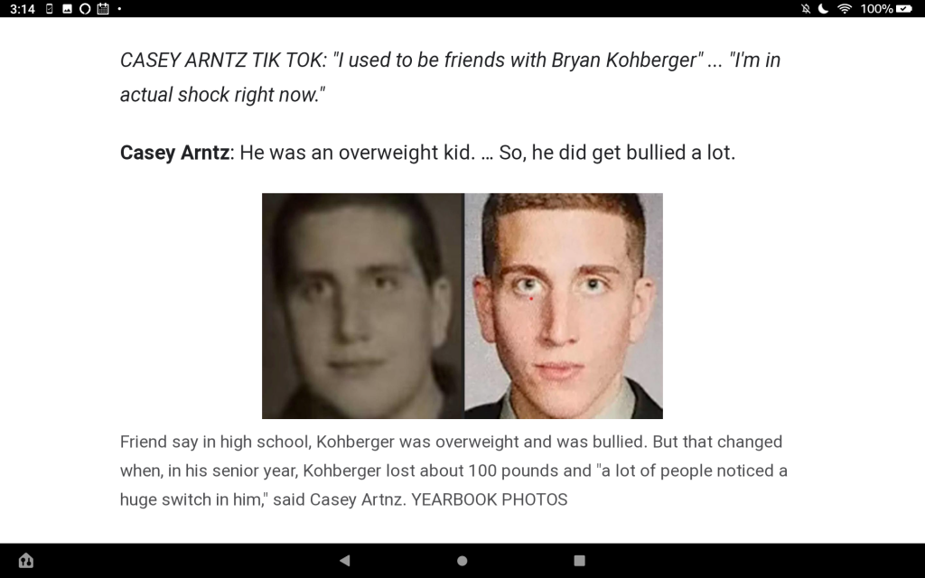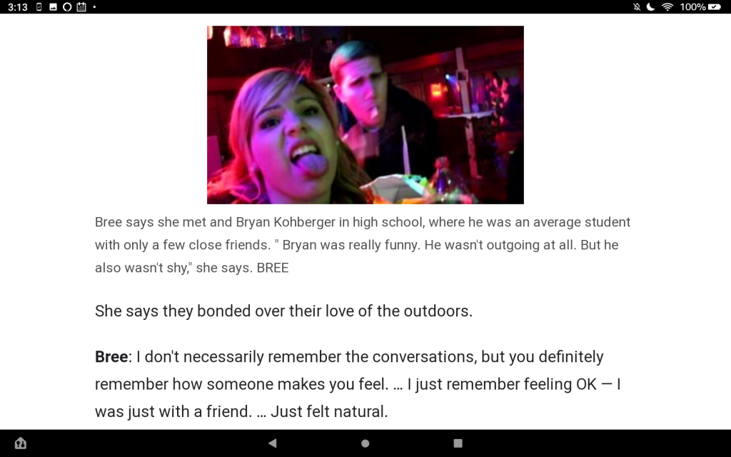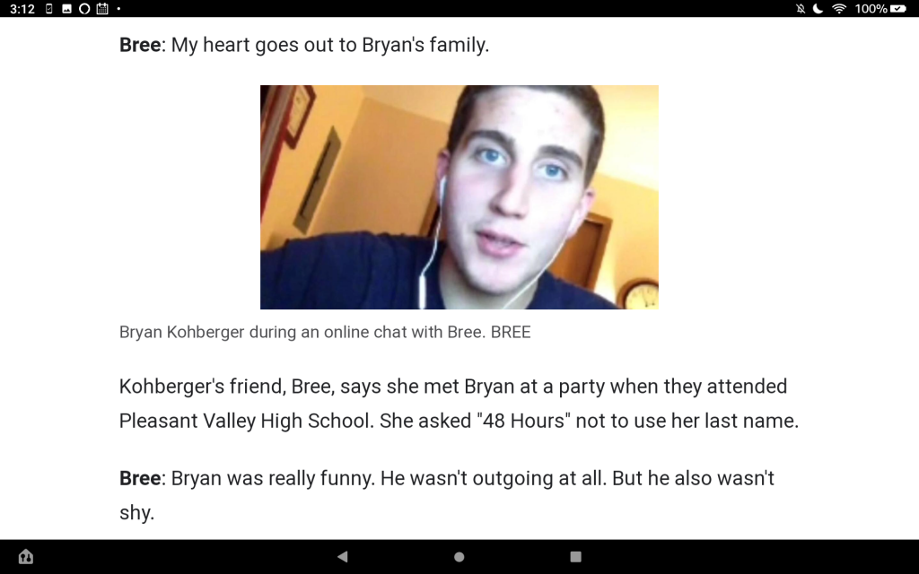 I also am puzzled why she called friends the next day after she awakened instead of calling 911. But maybe X's door was locked so she just knocked to ask about the crying and the man she saw coming from X's room the night before and got no response. Maybe she knocked several times loud enough it should have awakened the occupants. That could have been the point where she began thinking they were unconscious. But wondering why she didn't go upstairs to try to rouse M&K? Maybe she did and their door was also closed and locked and she got no response. That could have been the point where she started thinking about calling someone (perhaps E's brother or sister or K's brother, all U of I students or X's sister a WSU student.)