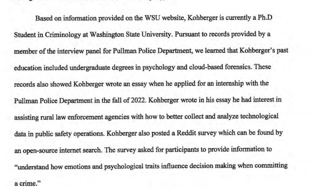 ETA to self: retracting BBM above. The emailing in April doesn't have to be synonymous with when he actually applied for the internship. No longer able to edit post.For crying out loud...Is that another "typo" in the PCA. I think the PCA as a whole is an amazingly detailed document and certainly demonstrates probable cause, but the defense are surely going to pounce on these mistakes and try to put the whole thing into question, or at least the competence of the writer? I've read the un-paywalled NYT article and there seems to be no doubt that BK actually applied for the internship in April (on-line not in person) whilst he was still at De Sales (sp?) but intending to go to WSU. Very disappointing if the PCA got this wrong. MOO