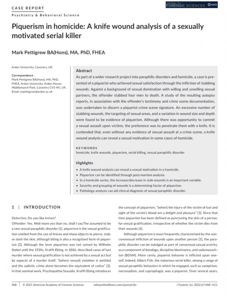 Here is a screenshot of the first page of a Case Study of piquerism that is very interesting. View attachment 382194