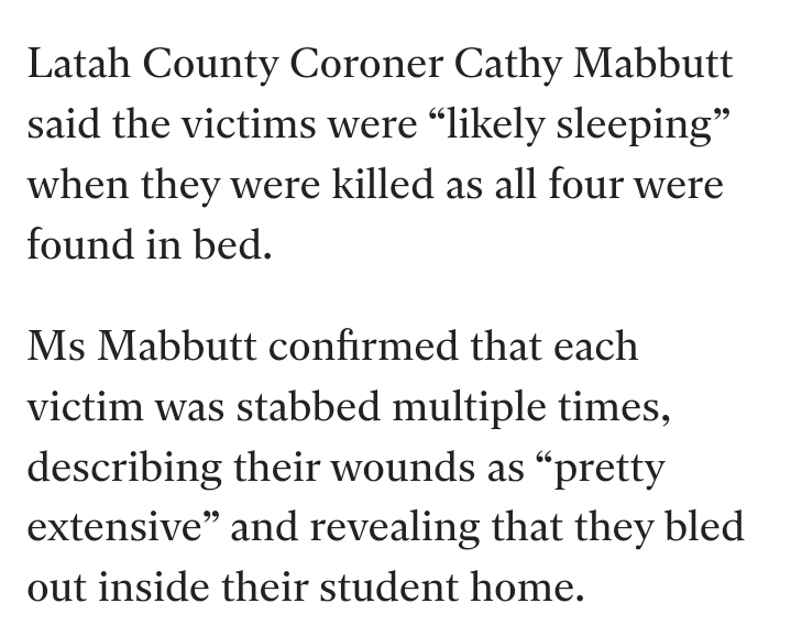 The Coroner has since corrected this statement to say that “some” of the victims were found in bed. I will look for the link but it was posted here several times.